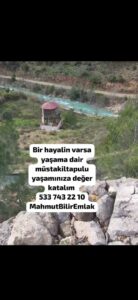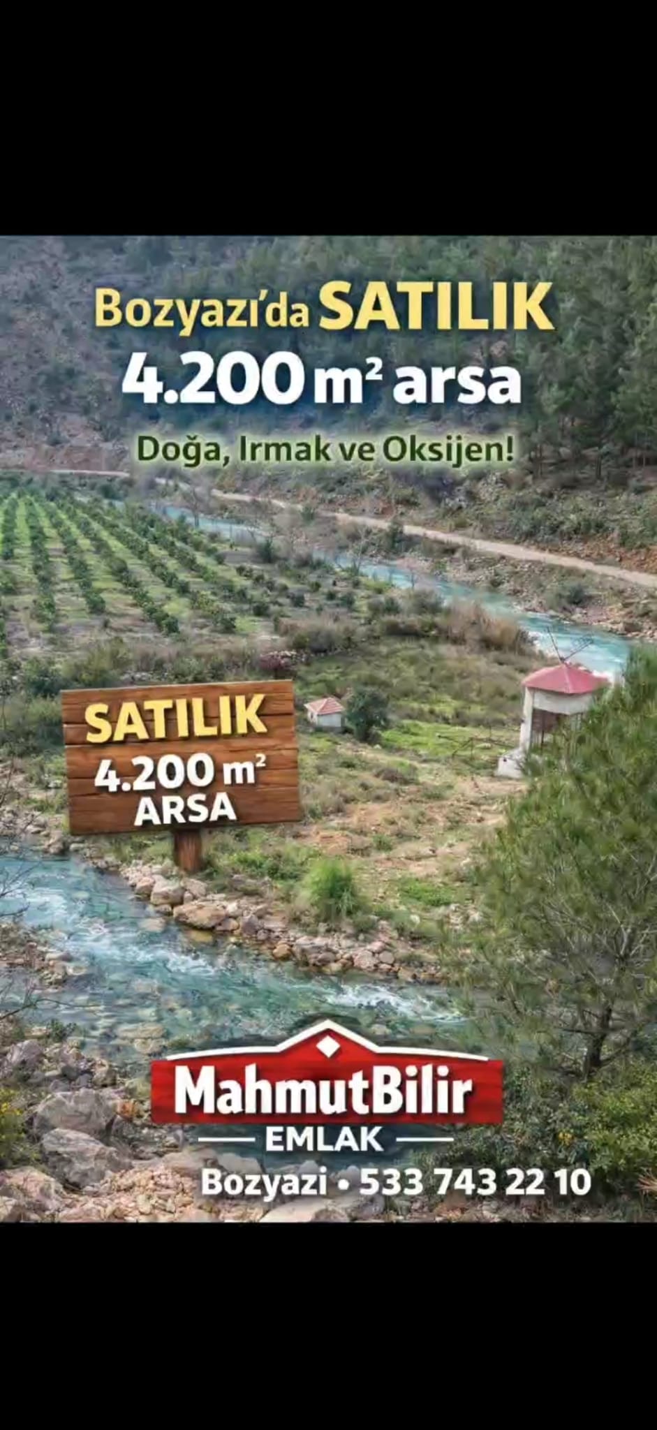 mersin bozyazı karahisalı mah .ırmak kenarında sıfır konumda doğa ile yaşam .suyun varlığı yaşamın devamlılığı için toros dağlarının içinde pınarların kenarında müstakil tapulu yatırımlık ve yaşam alanı denize 9 km mesafede